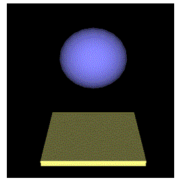 short VRML97 world definition, which defines a blue sphere hovering over a yellow platform.
